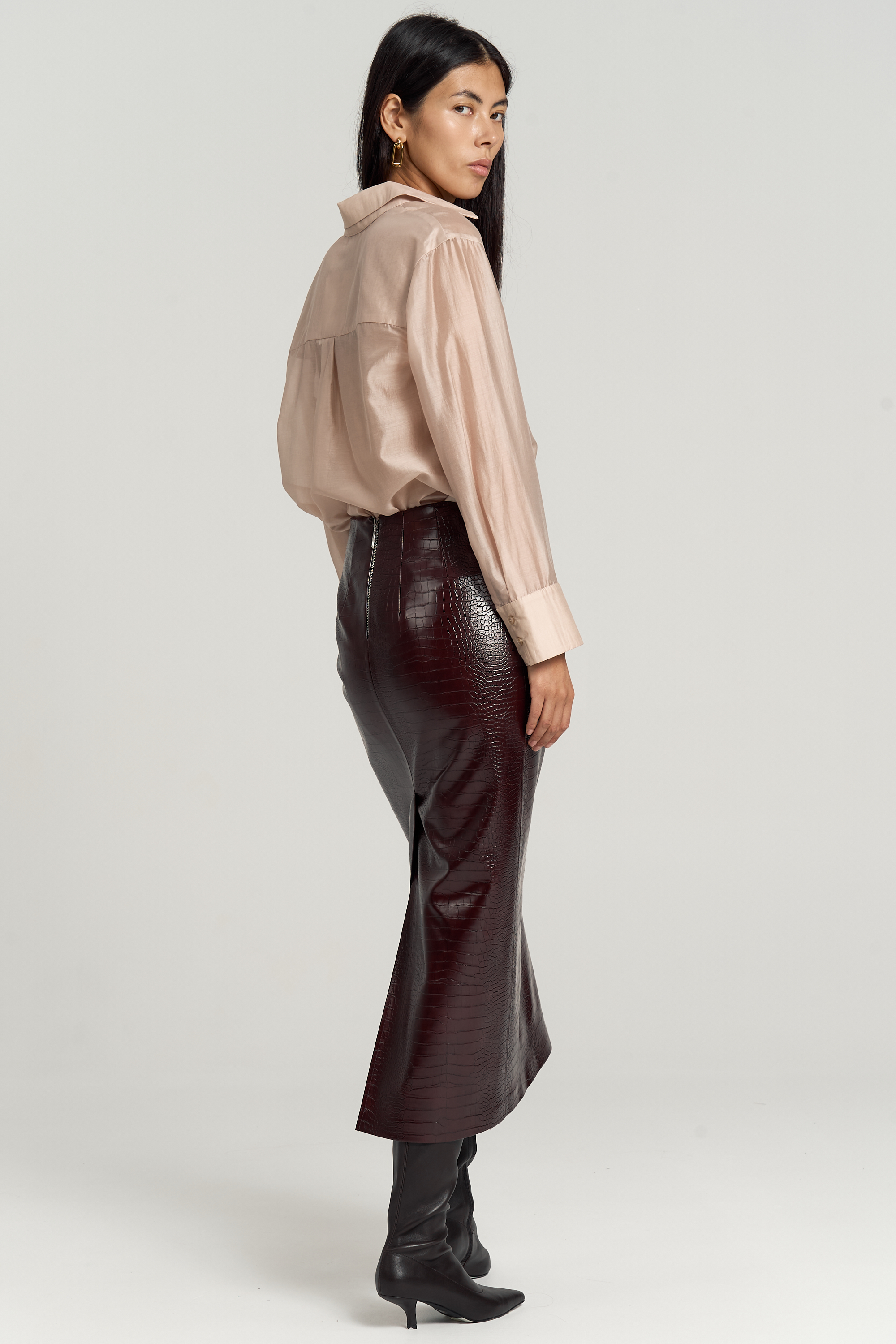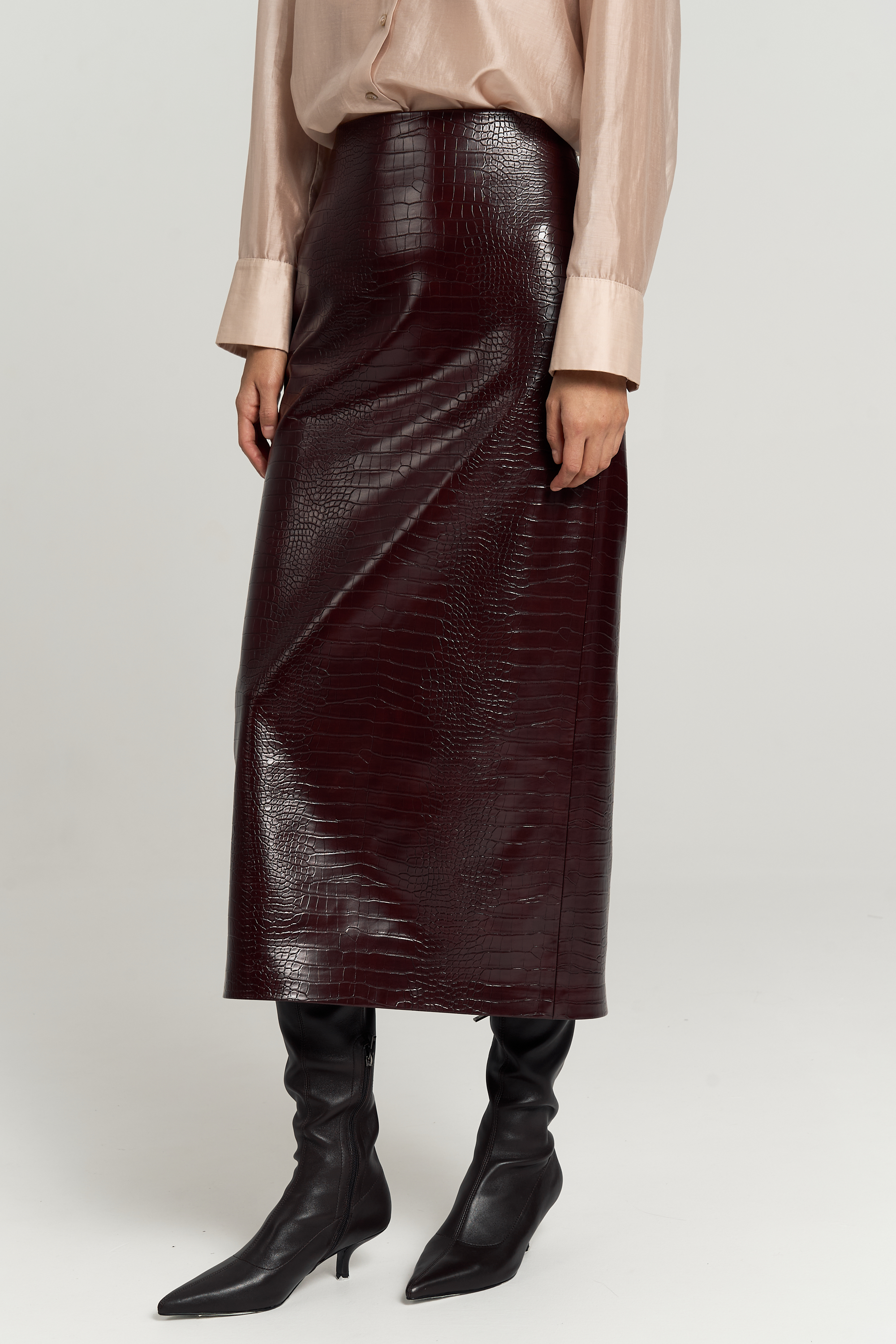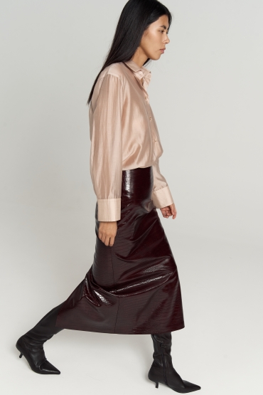 Модель прямого силуэта, длины миди. Пояс на обтачке. По спинке шлица, застежка на металлическую молнию. Изделие на подкладке из поливискозы.