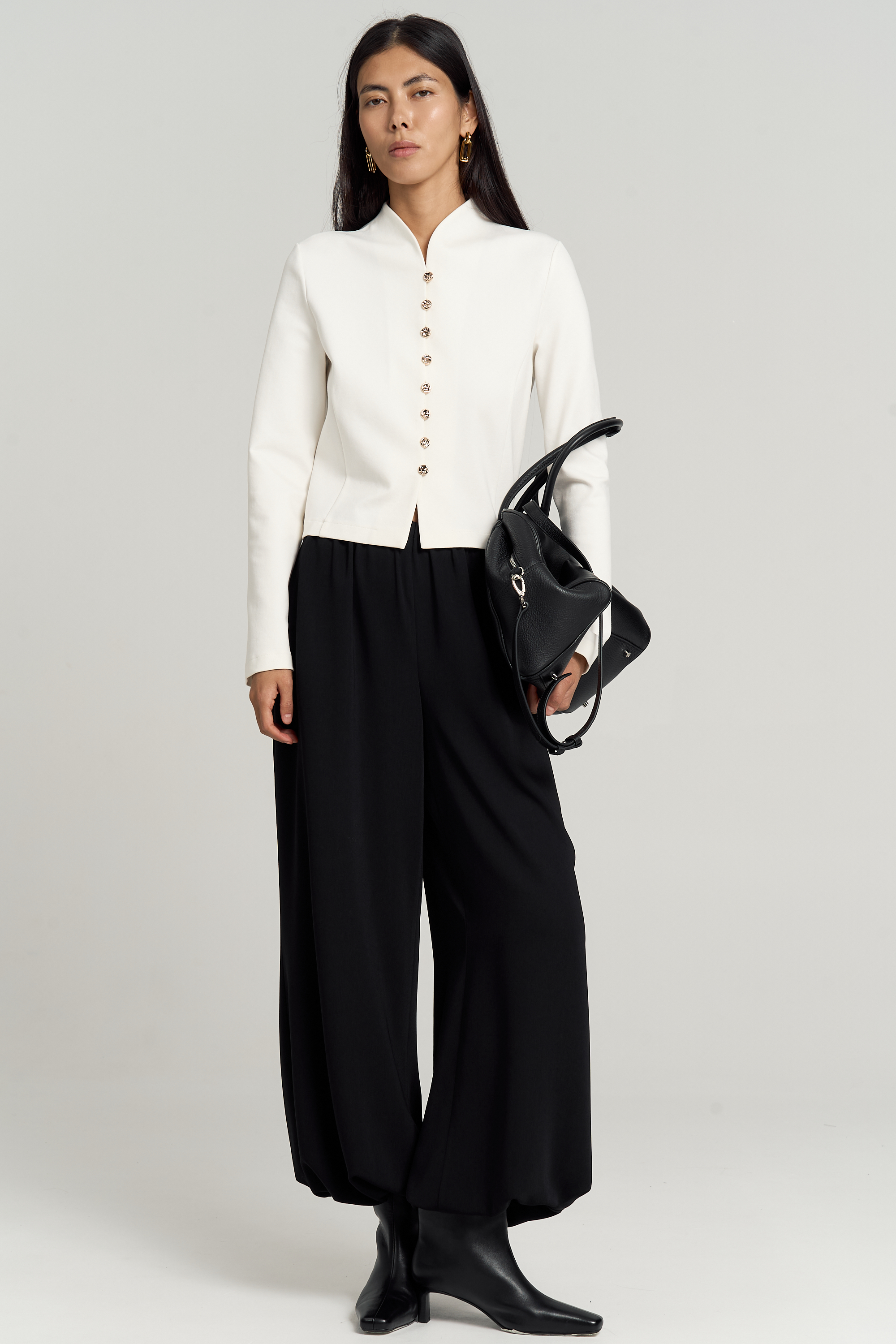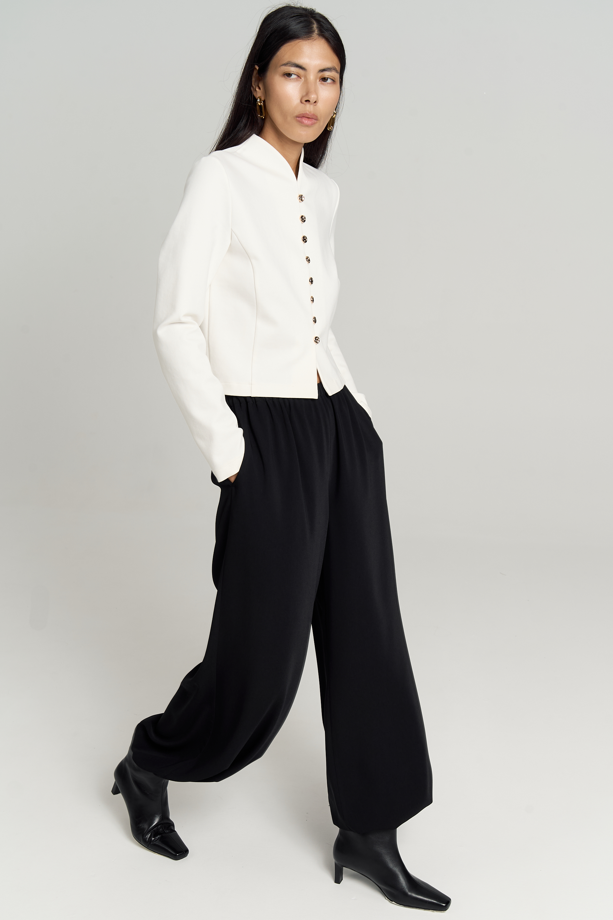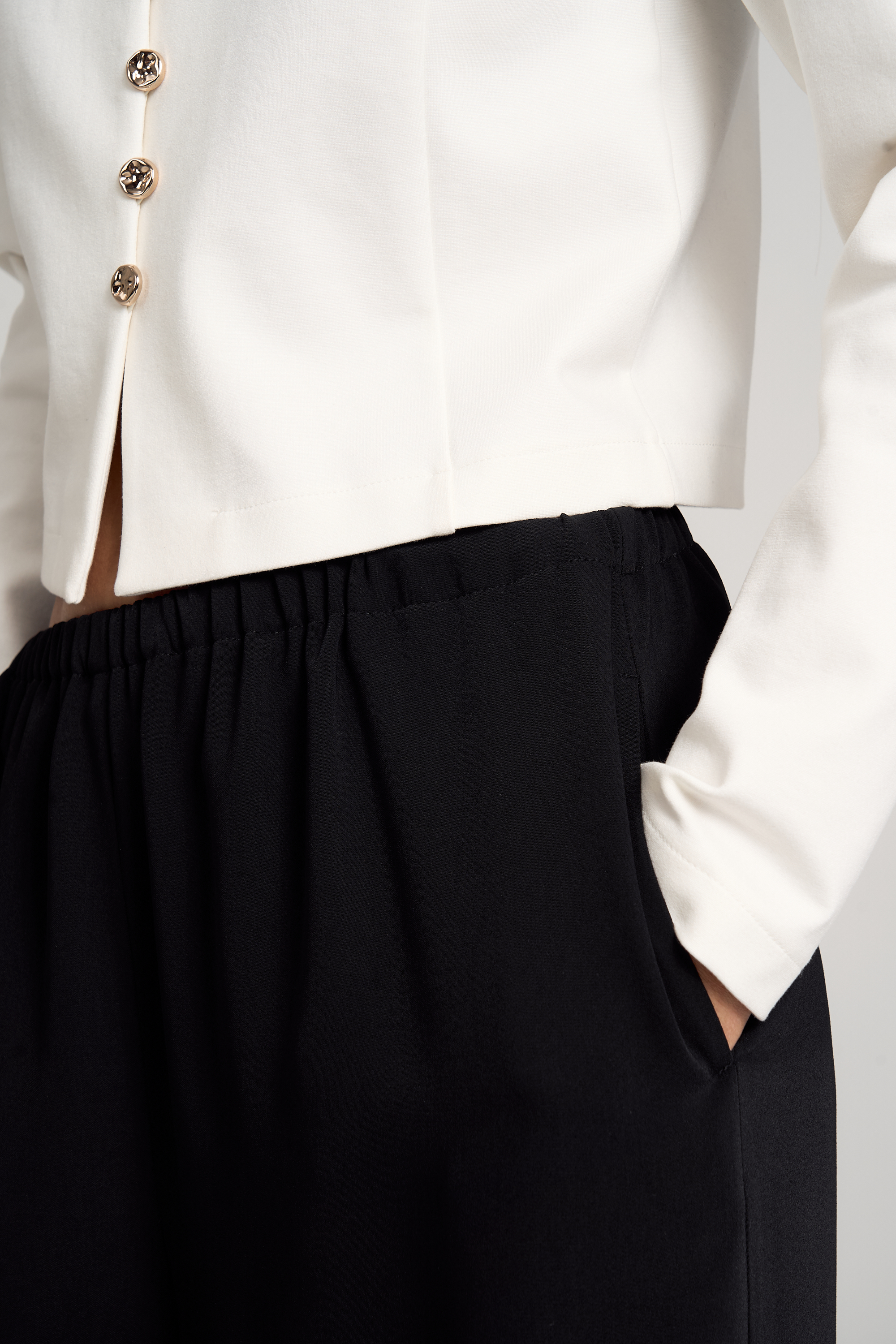 Модель свободного кроя. Карманы в боковых швах. Пояс и низ изделия на резинке.